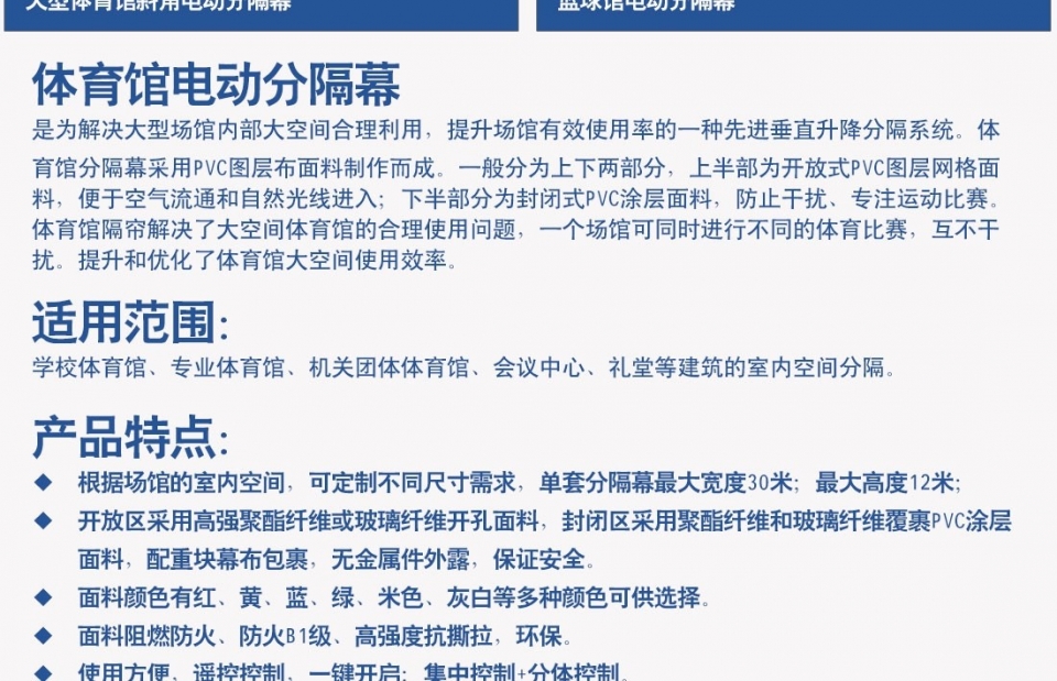 以上是電動升降分隔幕 體育館分隔簾 體育館場地分隔簾的詳細介紹,包括電動升降分隔幕 體育館分隔簾 體育館場地分隔簾